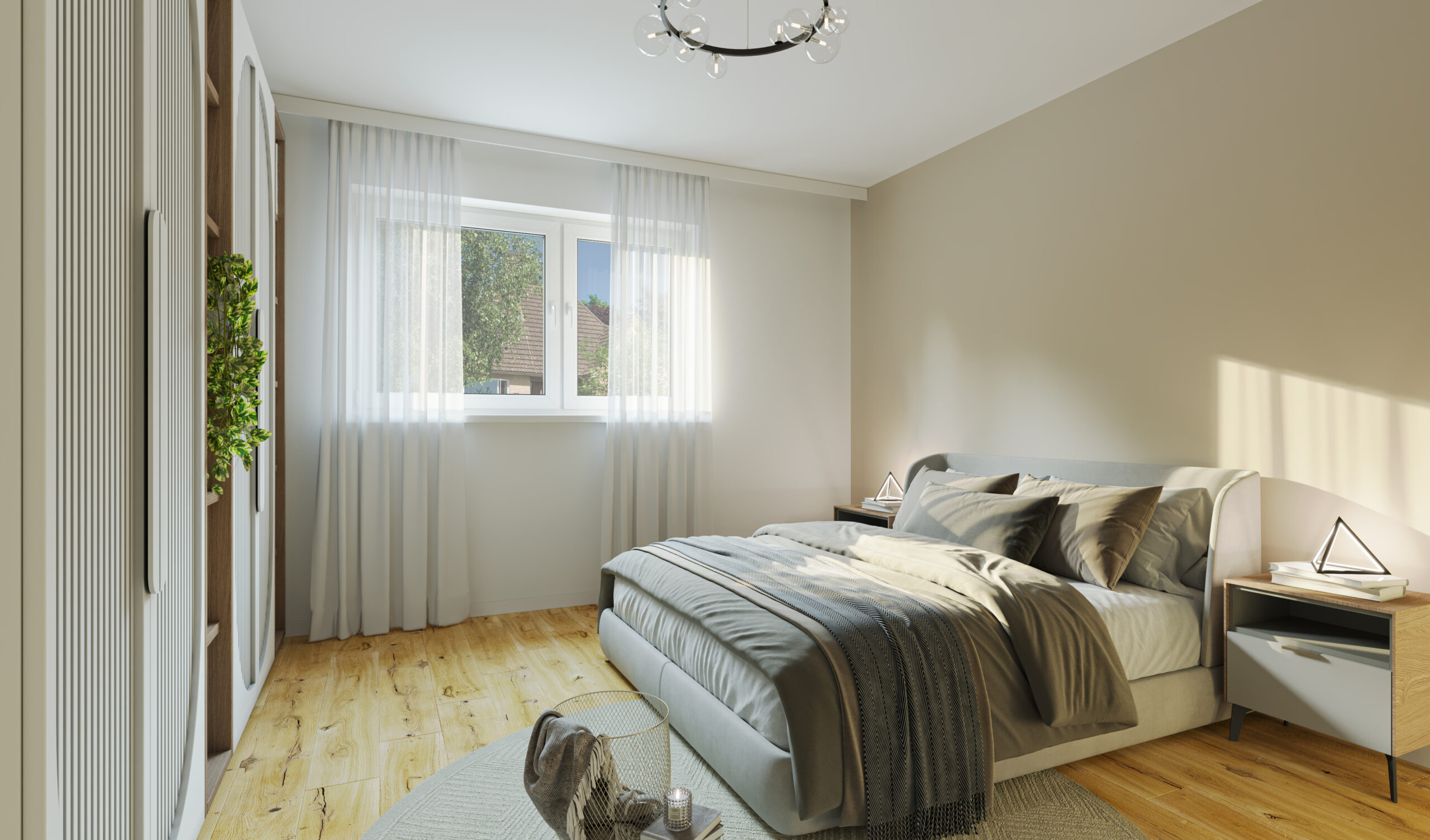 Alle Einheiten werden nach dem energieeffizienten KfW-55-Standard errichtet und überzeugen durch moderne Haustechnik, hochwertige Ausstattungsmöglichkeiten und individuell wählbare Innenmaterialien. Funktionale Details wie Tageslichtbäder, Abstell- und Hauswirtschaftsräume sorgen für zusätzlichen Wohnkomfort.